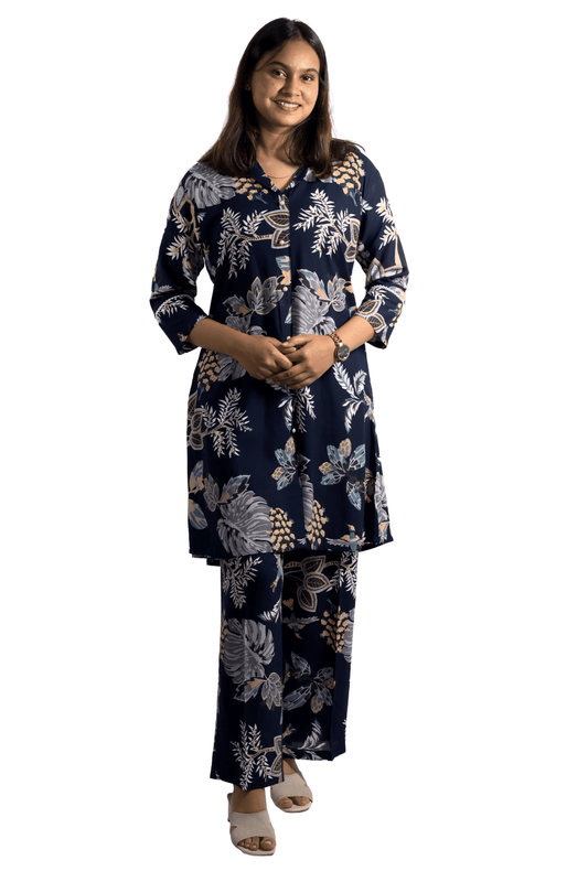 Soft Ryon Printed Navy Blue Coord Set