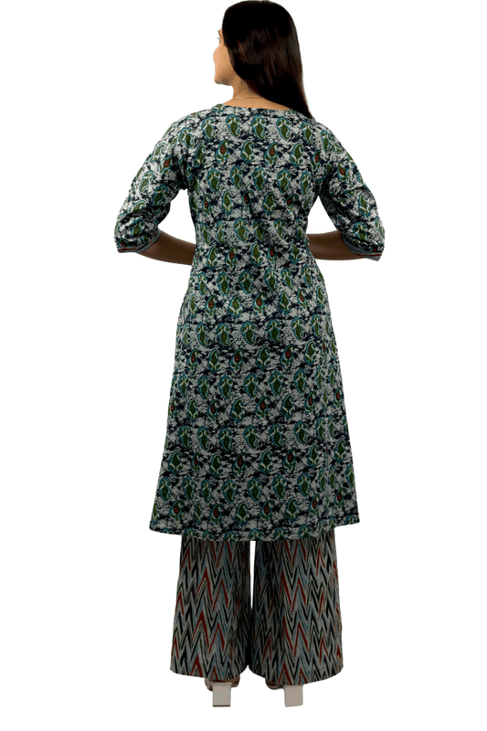 Soft Cotton Printed Jade Flaired Kurta and Palazzo