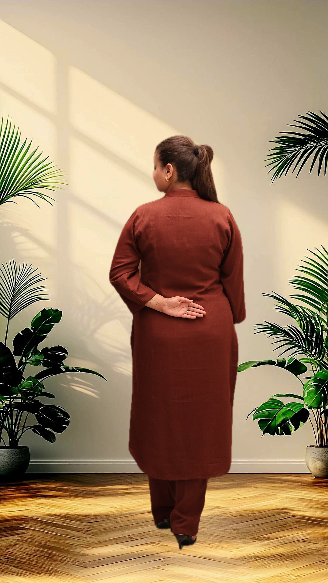 Soft Linen Brown Kurta Set With Cotton Jacket